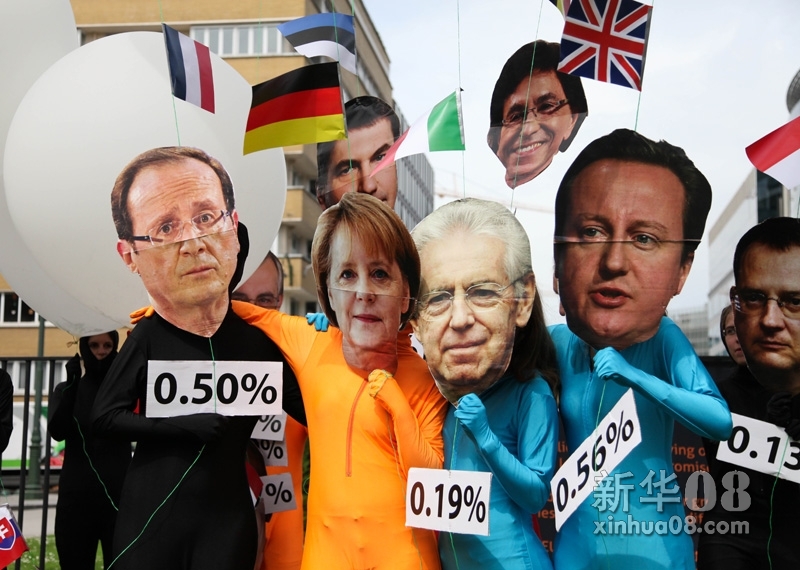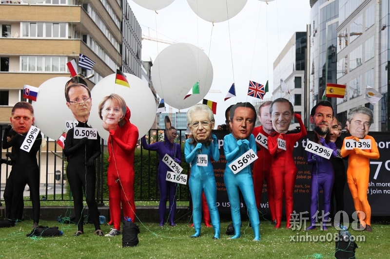 示威者在峰会前抗议欧盟领导人削减对发展中国家的援助。